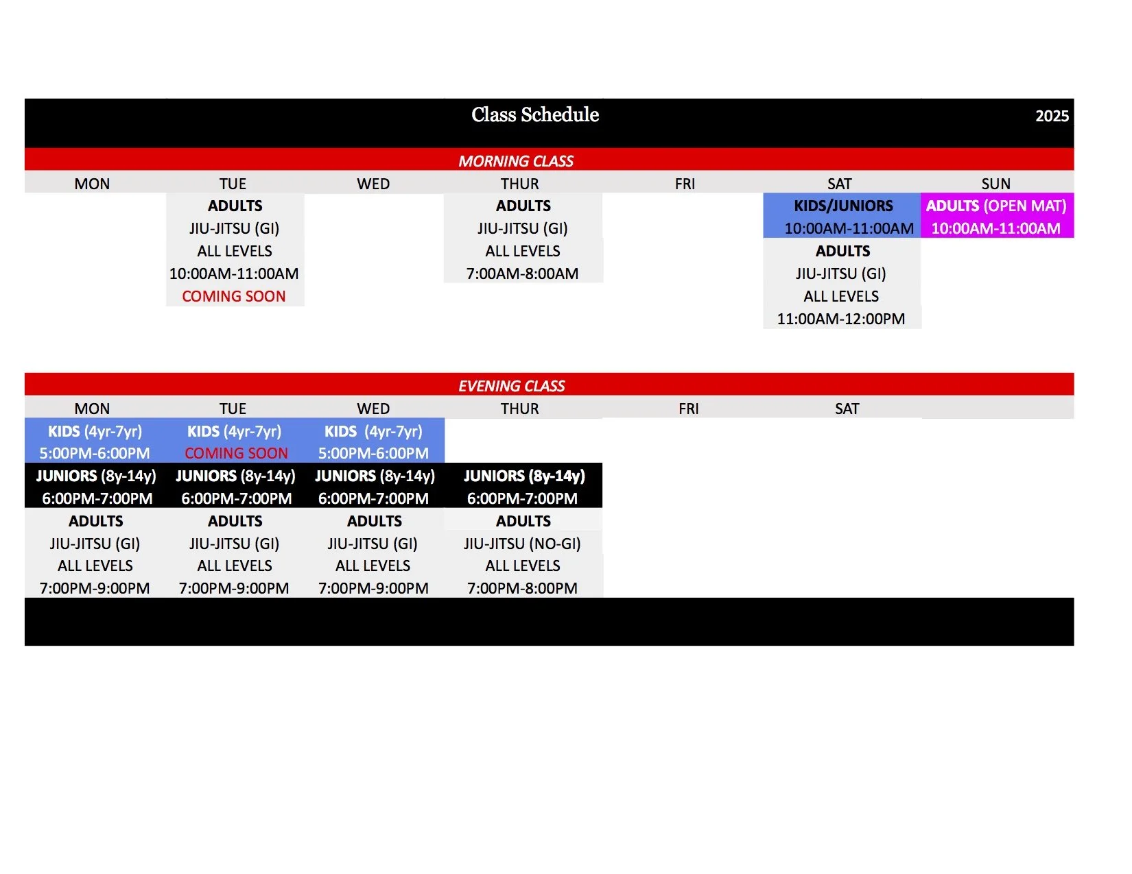 Our academy is now open, offering classes for Kids, Juniors, and Adults in Brazilian Jiu Jitsu, and Judo. Our experienced instructors are dedicated to helping you achieve your fitness and self-defense goals.